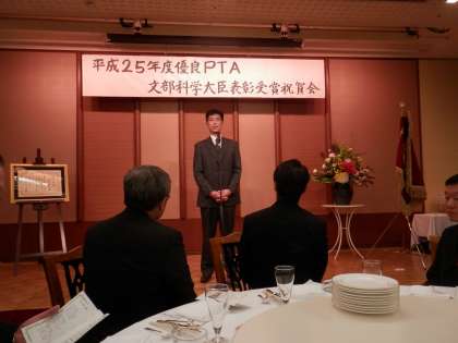 午後7時から、ホテルブライトンシティ山科で「優良PTA文部科学大臣表彰」の祝賀会が行われました。