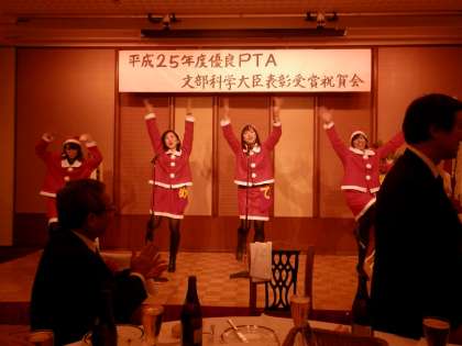 歓談の後、舞台上では花山中の教職員が楽しい余興を披露しました。
