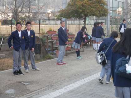 ちゃんとしようウィークも今日が最終日になりました。いつもは23分頃には職員室に戻りますが、今は職員朝礼がないので28分位まで校門にいます。