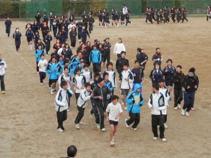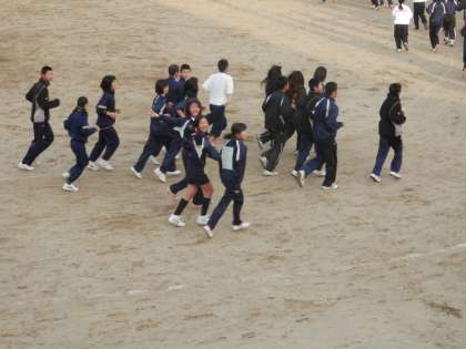 外へ出ると、写真の通り非常にたくさんに生徒が走っていました。