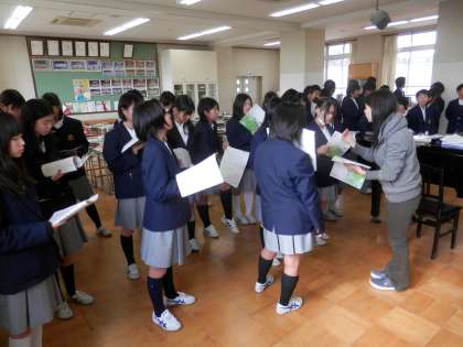 いつも下の階から順番に行きます。1年生の教室に行った時には、既に授業の残り時間がほとんどなく、音楽に時間しか見られませんでした。