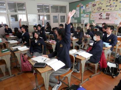 また、数学では、ちょうど私が訪れたときに先生が発問をされ、こぞって挙手をしていたのがおかしかったです。