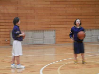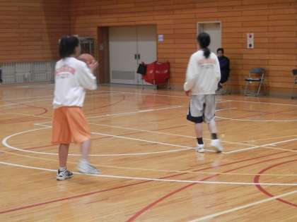 体育館では男女のバスケットボール部が活動していました。先ずは、女バスです。ちょっと人数が少ないようですが…。