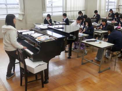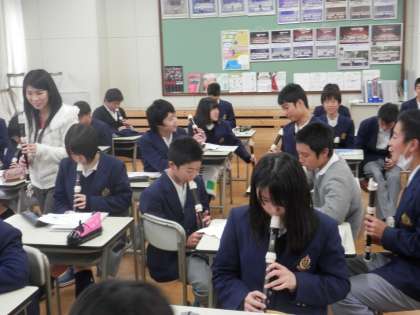 先ずは、2年の音楽の授業です。今日はリコーダーの練習をしていました。曲目はジングルベルです。