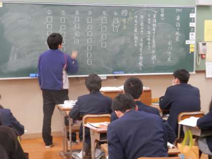 国語では返り点のついた漢文の読み方(読む順序)について学習していました。