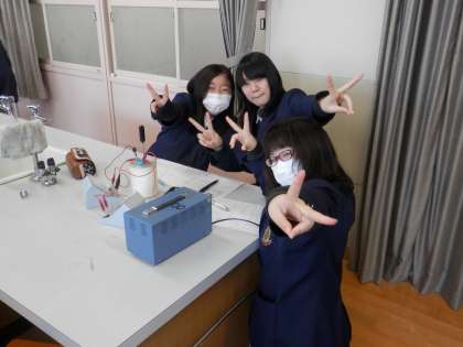 理科の実験の合間にもカメラに向かってポーズを決める人がいました。