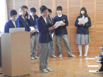 続いて、生徒会本部役員による学校紹介です。