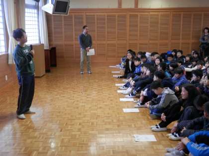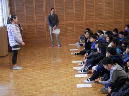 「花山中学校では、全校集会で校長先生が突然生徒を指名して話をさせはります。今日は、それを僕がやります。」
