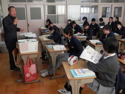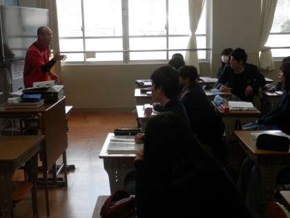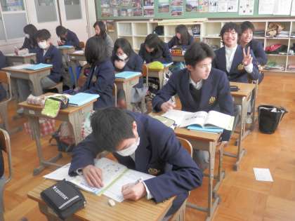 3年からは保健(2クラス同時進行)と社会の授業を紹介します。