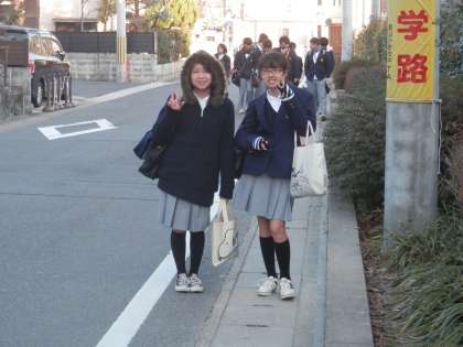 校門付近で清掃活動をしてくれている吹奏楽部の生徒達は、写真を撮るというと何かしらパフォーマンスを考えてくれます。