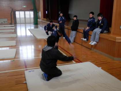 今日は体育館でマット運動です。グループごとに熱心に取り組んでいました。