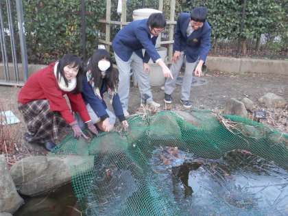 強烈に寒い朝です。久しぶりに校門横の池に氷が張りました。