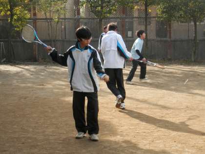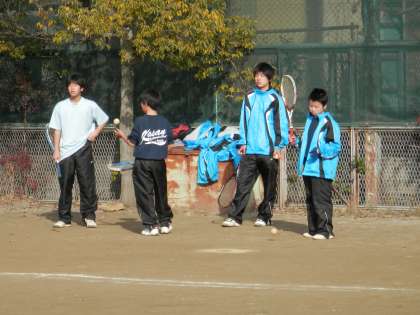 テニスコートでは男子部が練習しています。徐々に上達しています。先週ちょこっとアドバイスしたことが今日の練習でできている人がいます。
