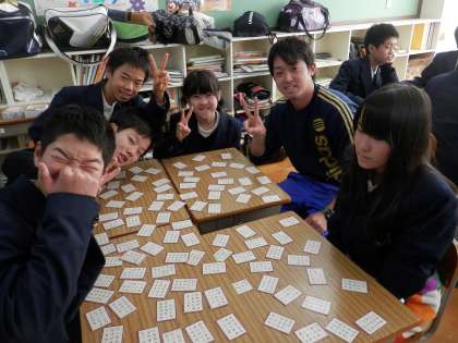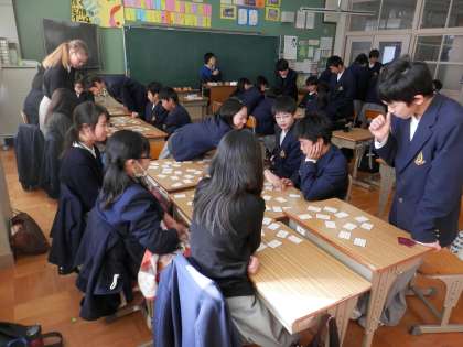 先ずは、1年生の様子です。5時間目の1・2組女子の体育と6時間目のカルタの練習の様子です。