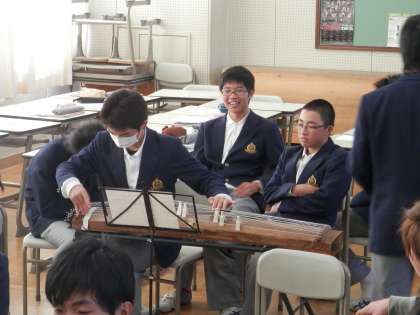 数学では「確率」の学習を、音楽では琴の演奏練習を行っていました。