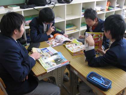 資料があまりたくさんないので、学級ごとに持ち回りにしているのだそうです。今日は1組さんがやっていました。