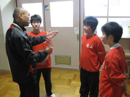 ※ あまりに寒いので、ブラバンの子たちが「おしくらまんじゅう」で身体を温めていま す。一方で、早くから部活動で頑張っている生徒達もいます。