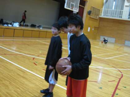 男子バスケットボール部は、体育館で気合いを入れて練習していました。