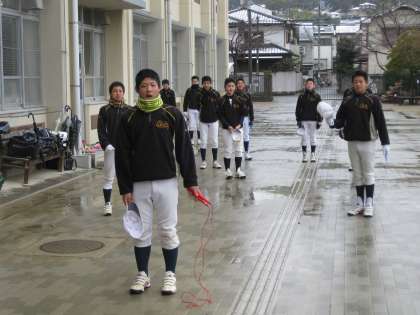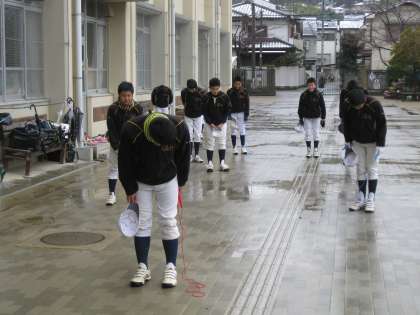 校舎の玄関付近で基礎体力をつけるトレーニングをしています。