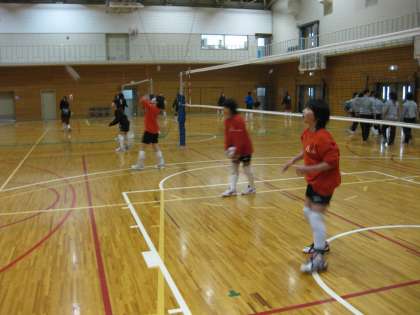 今日は市内の北野中学校と亀岡の東輝中学校を招いて練習試合をしています。