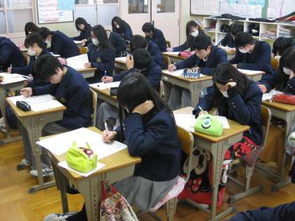 まるでテスト中のように取り組んでいるのは、高校の過去問に取り組んでいる様子です。また、体育の時間に楽しそうに活動するのもいいですね。