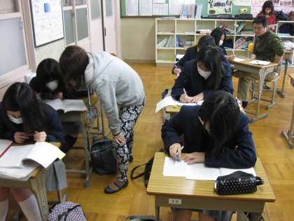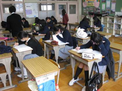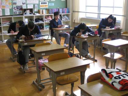 定期テスト前で部活動がない静かな学校に、3年生たちがやってきて学習をしています。中には、既に私立高校に合格して、進路の確定している人もいるようです。