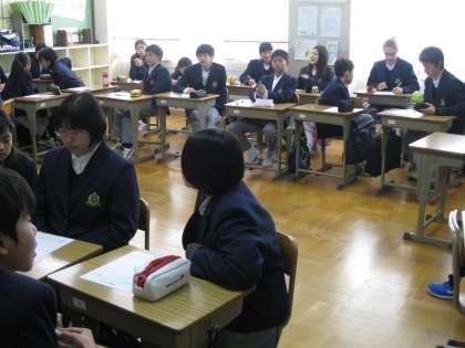1−4は、いつものように机の配置を「コの字型」に変えての授業です。