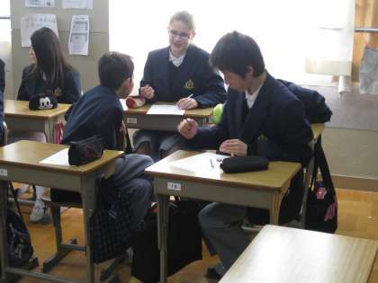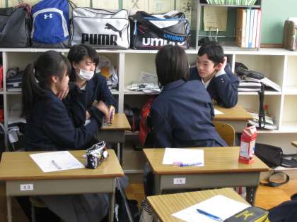 こうすると、互いの顔が見えやすく、小グループでの話し合いもしやすいのでよいと思います。是非続けてください。また、他のクラスでもどしどし取り入れてほしいと思います。
