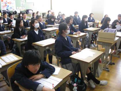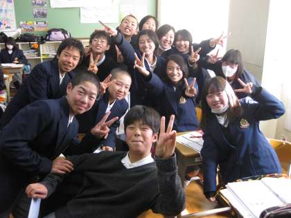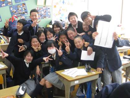今日はテストの返却。採点についての質問に教卓へと行っている人以外は、自習のようになっており、私がカメラをもって教室へ入ると一気にこの通りになりました。