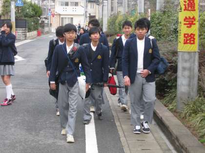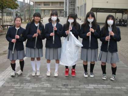 ※今朝、校門付近の清掃を担当してくれたのは、吹奏楽部のクラリネットパートの人たちです。火ばさみをもつ手がそれらしいでしょ。
