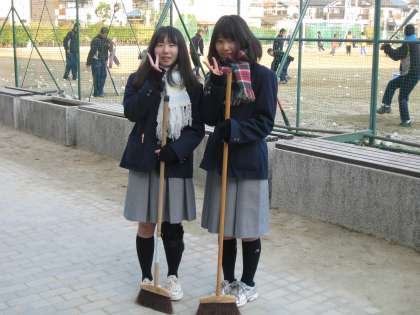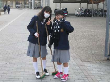 吹奏楽部の皆さんが、今朝も熱心に清掃活動に励んでくれています。