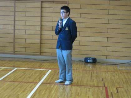 くす玉を割る役に選ばれたのは、前委員長の根木君、生徒会長の澤君、そして6組の西村君です。よい人選でした。