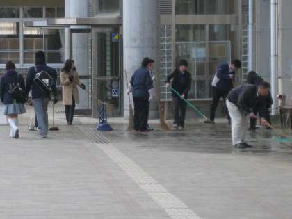 私が出勤したときには、1年学年主任と用務員さんが掃除をはじめていました。ところが、すぐに写真の通り、次から次へとメンバーが増えて行きました。