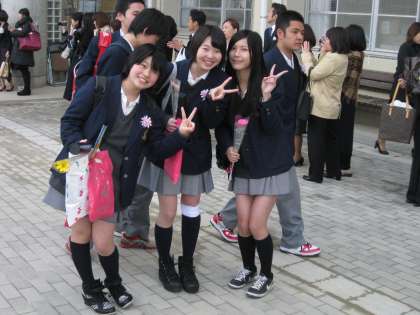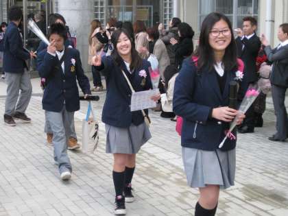 花道を通る卒業生の姿は、笑顔も涙もあって色々です。