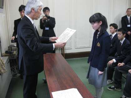 本校からは、卒業生(3年生)の星野彩乃さんがこれを受賞しました。