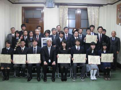 ※受賞の際の写真と全受賞者【参加者】、及び教育長とのツーショットです。