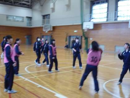 2年生で球技大会が実施されています。女子は体育館でバスケットボールを楽しみました。