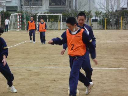 男子のサッカーは結構,激しい当たりもあるようです。みんな懸命にボールを追いかけています。