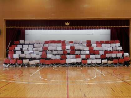 22日に結婚される勝野先生に「人文字メッセージ」のプレゼントです。
