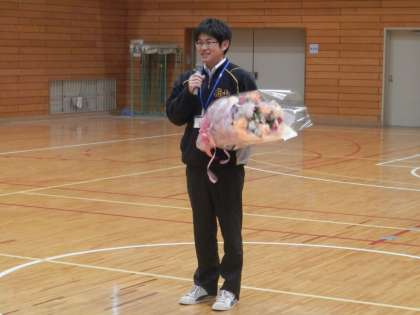代表の生徒から花束が渡されると、勝野先生は思わず目頭を熱くしておられました。