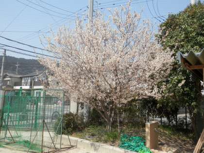 グランドの北西角にある「早咲きの桜」が満開になりました。
