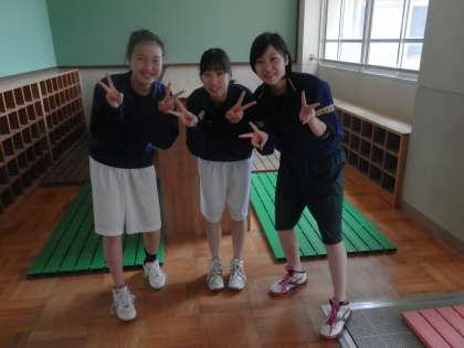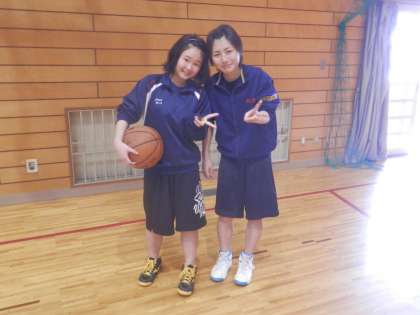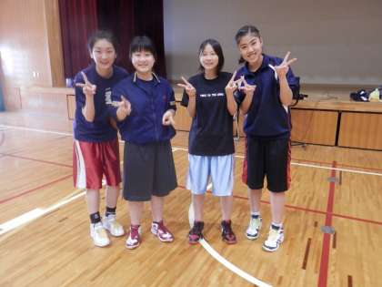 朝早くから活動していた女子バスケットボール部は、休憩時間中でした。
