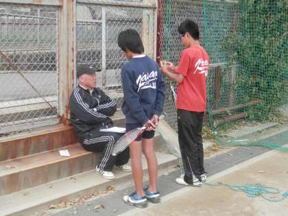 テニスコートでは男子部が熱心に練習をしていました。それにしても、上手になってきました。春の大会を楽しみにしています。