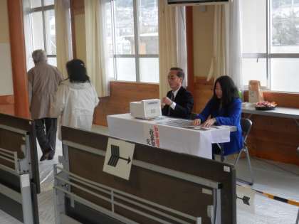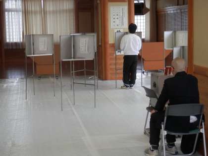 朝から花山中学校も選挙会場になっています。寒いせいか投票率がなかなか上がらないようです。