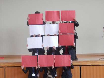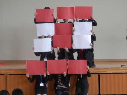 ところが、最初の文字「イ」だけが示され、あとは学年集会でのお楽しみということでした。いったい何でしょうかね。