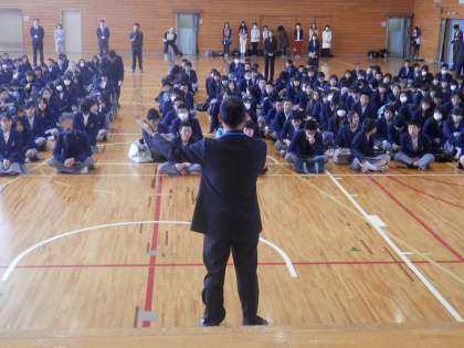学校長が話した「主体的に生きろ!」という部分を更に具体的に話してくださり、生徒諸君も大変よく理解できたのではないかと思います。