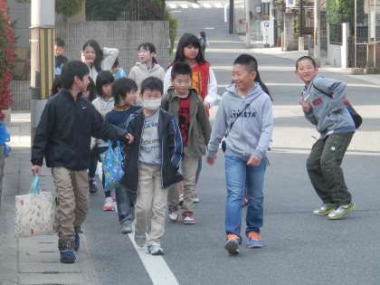 小学校は、。今日から新年度のスタートです。久しぶりに登校する小学生の列を見送りました。