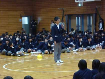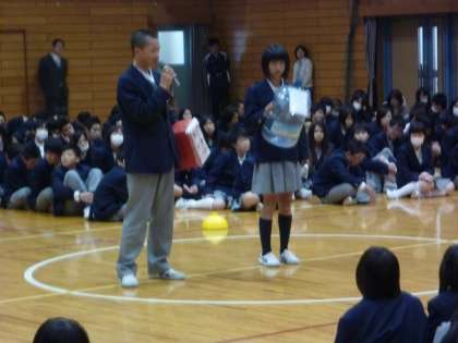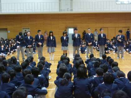 新入生を迎える会のあと,引き続き生徒会オリエンテーションが行われました。生徒会本部の紹介後,生徒会で取り組んでいるエコキャップ運動などの説明や生徒会の活動について詳細が説明されました。