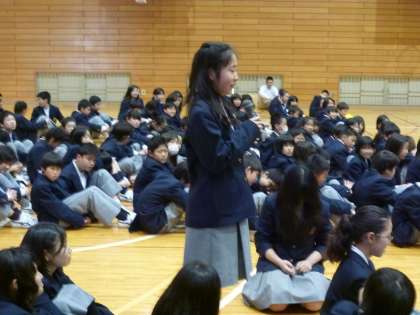 新入生を迎える会・生徒会オリエンテーションを終えて,1年生に感想を生徒会が聞いてくれました。400人を超える生徒の前で,堂々と「がんばって学校生活をおくりたい」と決意をのべてくれました。