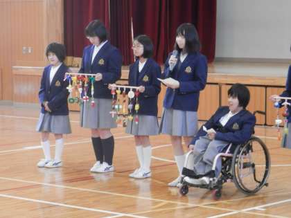 校長室の暖簾(のれん)は、今年も紹介されましたが、3年前家庭科部の皆さんに作ってもらったものです。